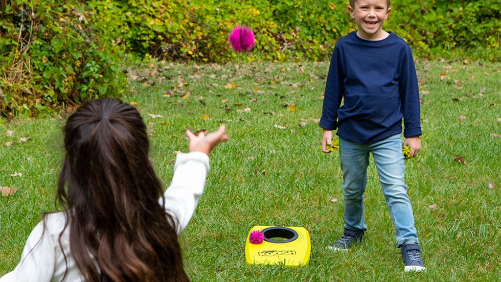 Ova nova ljetna igra tvrtke PlayMonster kombinira dva klasična favorita: Koosh i cornhole. Budući da vrećice za grah zamjenjuje šest mekanih, neonskih Koosh loptica, ova verzija omogućuje djeci da Koosh Kornhole igraju čak i u zatvorenom téru. Igraća ploča je lagana, jednostavna za postavljanje, tako da zabava može brzo početi. Ova igra je savršen izbor za obiteljska okupljanja, druženja s prijateljima ili čak za kišni dan kada se djeca žele igrati u stanu. Šarene Koosh loptice nisu samo sigurne, već igru čine uzbudljivijom, dok istovremeno razvijaju spretnost ruku i koordinaciju.