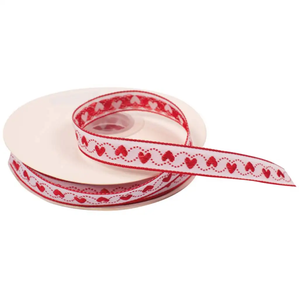 Ova prekrasna dekorativna traka ukrašena srcima savršen je izbor ako želite dodati jedinstven i šarmantan izgled svojim poklonima, dekoracijama ili ručnim radovima. Traka širine 12 mm i duljine 20 metara u klasičnoj bijelo-crvenoj kombinaciji boja daje romantičan i elegantan ugođaj bilo kojem ukrasu.