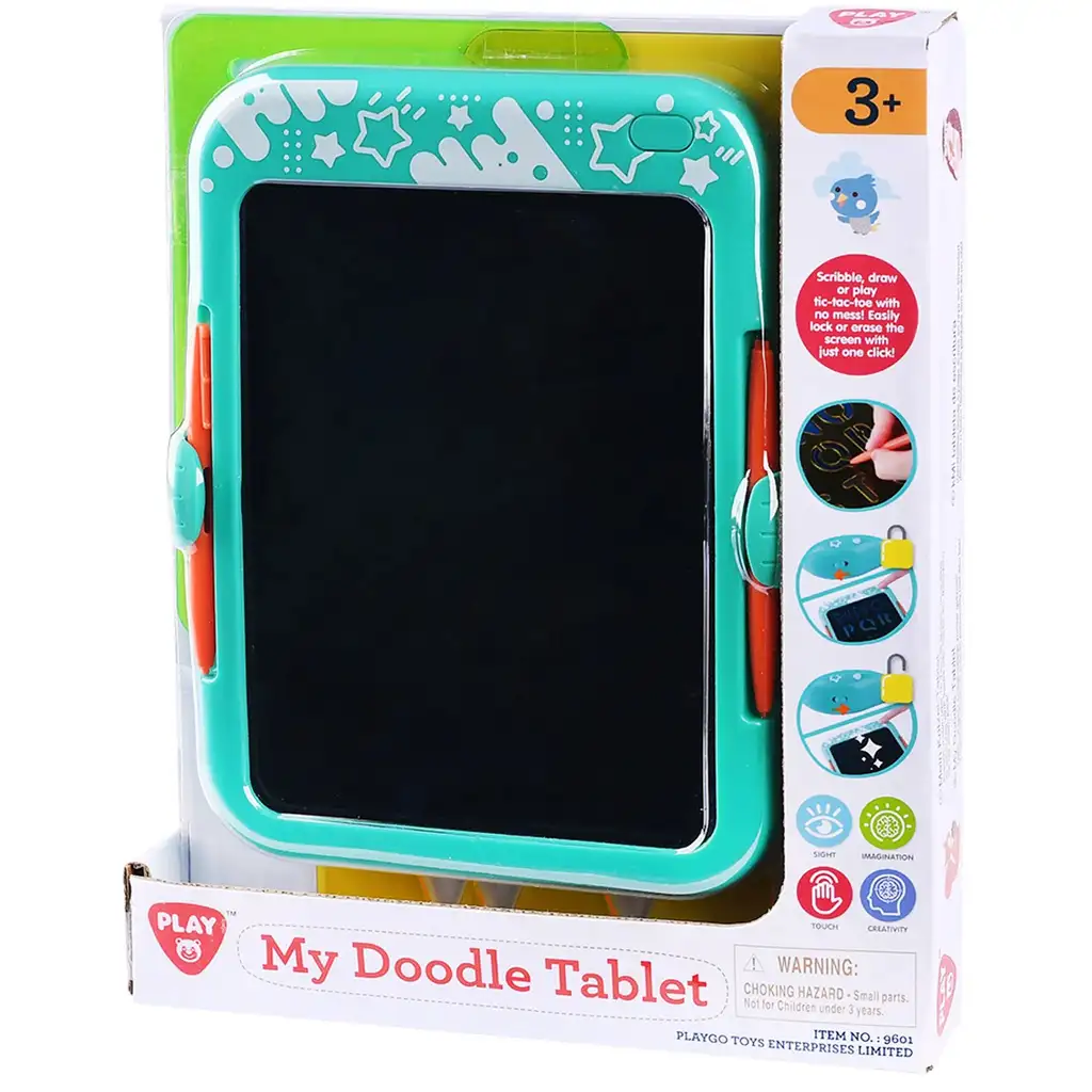 Playgo Magična nastavno-crtna ploča idealan je izbor za svako znatiželjno dijete koje voli crtati, šarati i usput učiti kroz igru. Ova posebna tablet ploča može se koristiti već od 3. godine života i pomaže djeci razvijati kreativnost, spretnost ruku te prepoznavanje slova i brojeva. Uz pomoć šablona koji se nalaze u pakiranju djeca mogu lako vježbati pisanje, crtanje i računanje – sve to na zabavan način.