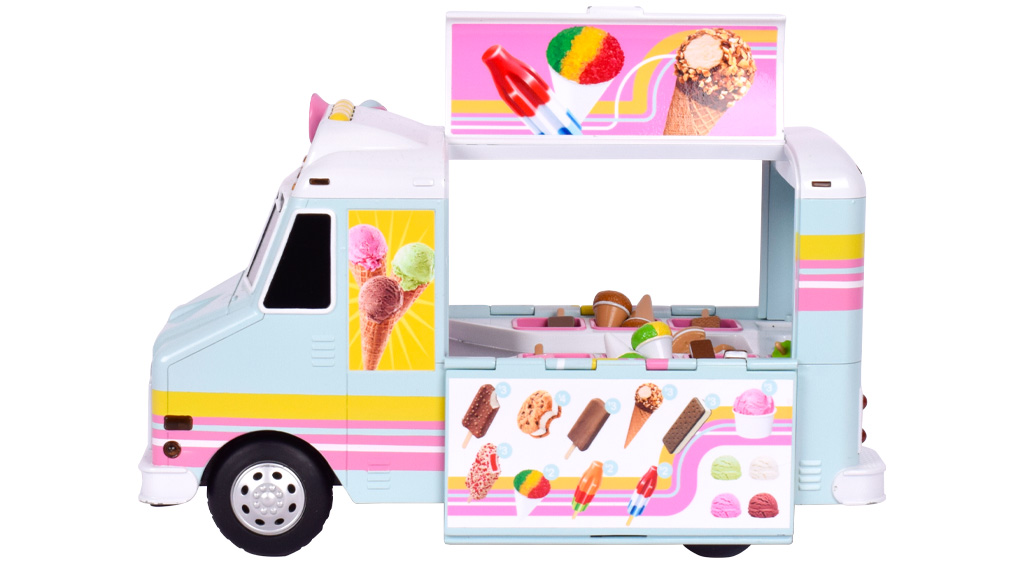 Djeca mogu podizati, pomicati i razbijati građevne blokove pomoću tri joystick kontrolera! Dizalica od 27 inča dolazi s tri dodatka — lopatom, kukom i kuglom za rušenje — te s trepćućim svjetlima i "realističnim zvukovima". Pritiskom na gumb dizalica se kreće naprijed ili natrag.Povuci natrag kamion s sladoledom, zavrti ga, a zatim gledaj kako se kotrlja! Vozilo od 30 centimetara ima prozore s obje strane koji se otvaraju kako bi djeca mogla zaviriti unutra i pretvarati se da poslužuju 16 različitih igračaka sladoleda. Kamion sa sladoledom svijetli, reproducira različite zvukove, a na tablama su prikazani različiti okusi. Ova igračka nije samo zabavna, već razvija dječju maštu i socijalne vještine. Detaljna izrada kamiona sa sladoledom i realistične funkcije čine igru još ugodnijom. Savršen izbor za svako malo dijete koje voli sladoled i igre uloga.
