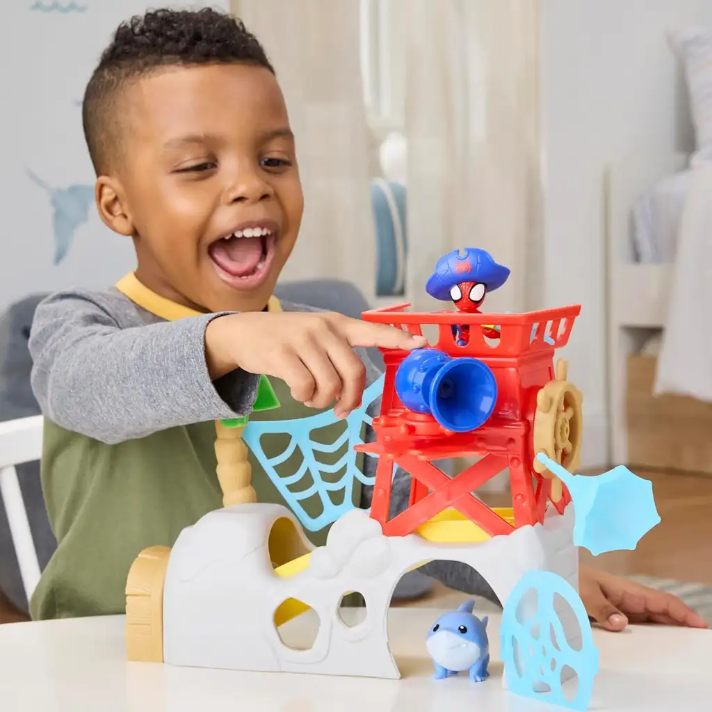 Figurice su posebno dizajnirane za male ruke pa ih je lako držati i pomicati, a set napravljen od izdržljivih materijala idealan je za igru u zatvorenom i na otvorenom. Kompatibilan je s ostalim Waterwebs i Spidey & His Amazing Friends setovima, tako da se avanture mogu nastaviti na novim lokacijama!