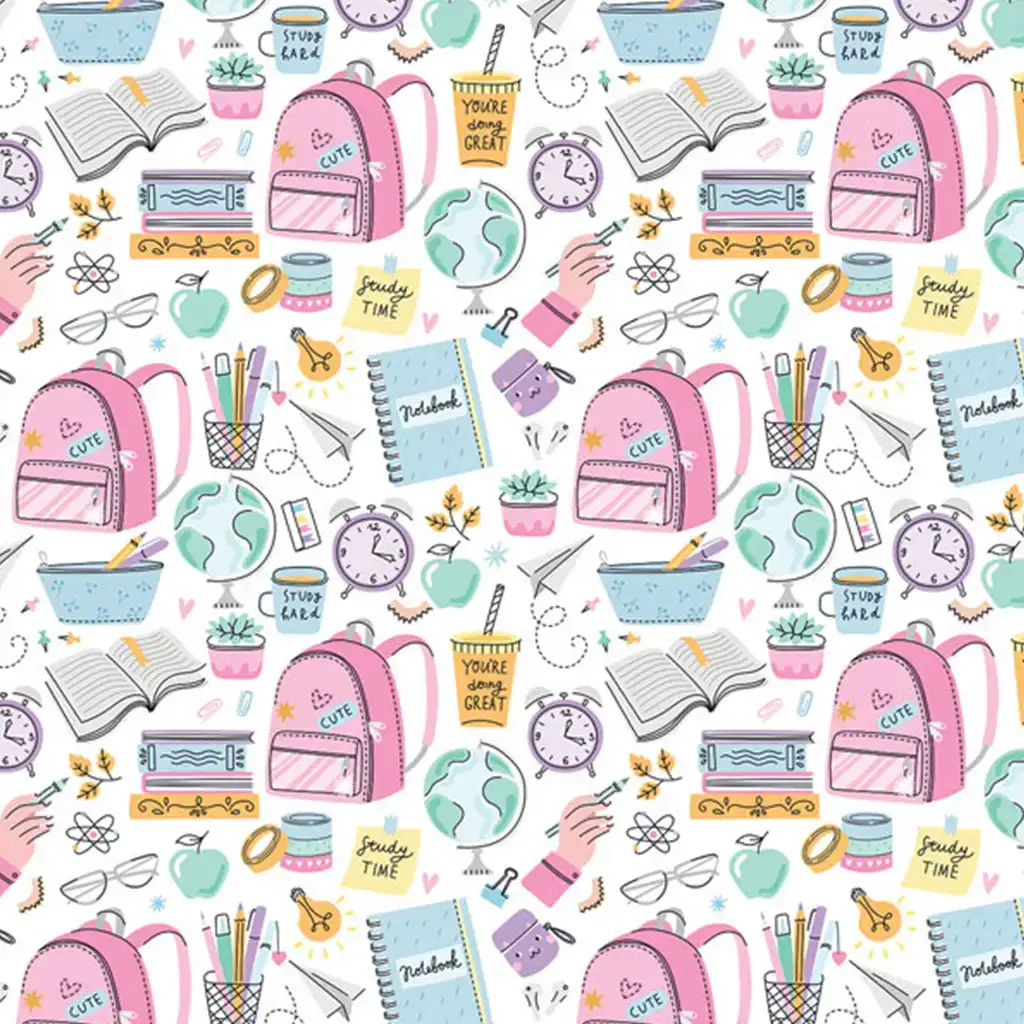 Ovaj veseli i inspirativni omot papir savršen je izbor za svako dijete koje ide u školu! Papir dimenzija 100x70 cm prepun je simpatičnih uzoraka vezanih uz učenje, koji će sigurno izmamiti osmijeh na licu i malima i velikima. Ružičasti ruksaci, bilježnice, olovke, globusi, satovi i motivirajuće poruke – poput „Study Time” i „You’re Doing Great” – sve ih potiče da s entuzijazmom krenu u učenje.