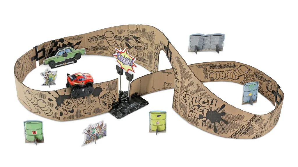 Novom serijom Turbo Edge Riders djeca mogu graditi uzbudljive staze za trikove koristeći materijale koji bi inače završili kao otpad. Automobili i vozila koja se nalaze u ovim novim setovima jure po starom kartonu, izvodeći zadivljujuće trikove oko svakodnevnih predmeta. Bilo da dijete želi utrkivati se u džungli dinosaurusa ili se helikopterom vinuti u visine, ovi setovi potiču kreativno razmišljanje u dizajniranju vlastitih staza.