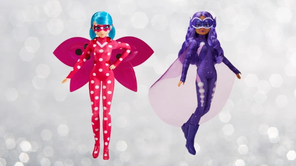 Obuci se da spasiš grad s modnim lutkama Playmates Toys Miraculous! Leti s Cosmobugom i sjaji s Ubiquityjem. Svaka lutka dolazi sa svojim superherojskim dodatkom.