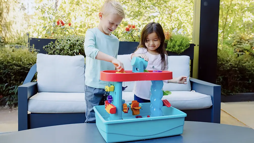Ovaj inovativni stol za vodu sadrži spremnik za vodu s poklopcem, gornju platformu koja stvara dvije razine za igru, i cijevi. Također uključuje 15 dodataka, među kojima su šalica, tri broda, i 11 vodenih konektora za prilagođenu postavku. Može se koristiti unutra ili vani, pružajući beskrajne mogućnosti za vodene avanture, gdje god djeca žele igrati.Ova vodena igra savršena je za bilo koju priliku za igru! Zabavna i edukativna, pruža dinamično i interaktivno iskustvo vodene igre. Svi dijelovi stanu u spremnik, osiguravajući uredno igralište i lako se može transportirati. Igra je također izvrsna za senzornu igru i razvoj fine motorike djece. Roditeljima je također lako sastaviti, bez ikakvih problema.