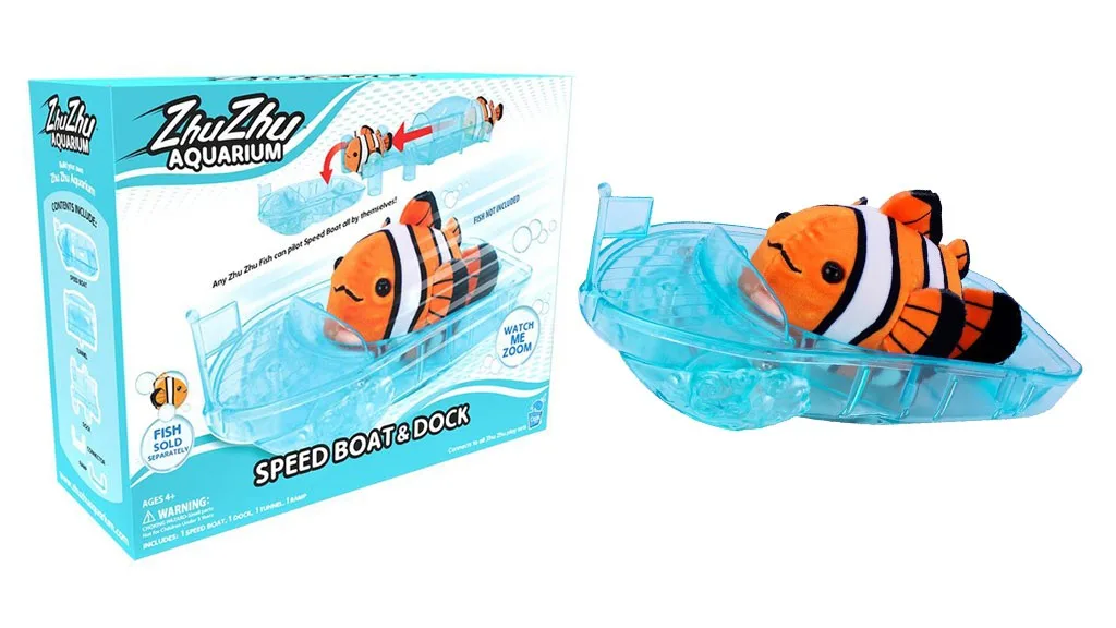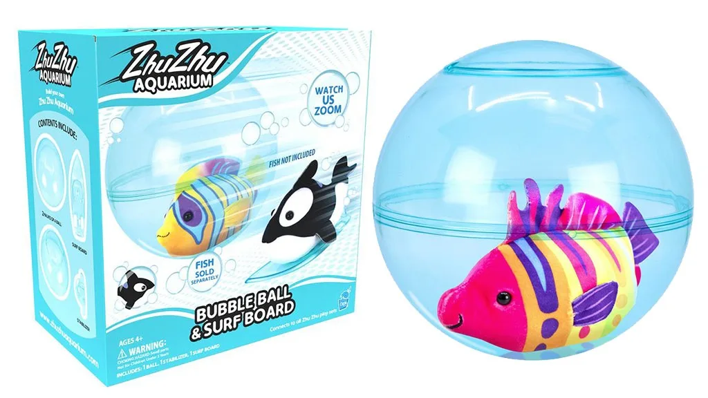 Izvorni Zhu Zhu Pets postigli su ogroman uspjeh kada su se pojavili na tržištu 2009. godine. Iako je marka jednom već ponovno pokrenuta 2017. godine, bila je dovoljno dugo zaustavljena da bi izazvala određenu neo-nostalgiju s novim, vodenim tematskim parom u kombinaciji s klasičnim Zhu Zhu igračkama.Kada smo prvi put isprobali ovu seriju na Newyorškom Sajmu igara prošle jeseni, obožavali smo gledati kako šarene ribe jure kroz beskrajno povezane cijevi i igračke dodatke koje djeca mogu iznova i iznova preoblikovati za jedinstveno "podvodno" iskustvo bez da se pokvase. Budući da svaka riba ima ugrađeni senzor sudara, brzo se prebacuju u rikverc i mijenjaju smjer kada naiđu na prepreku.Dok interaktivne ribe mogu biti kupljene zasebno, djeca mogu skupljati set Bubamara Lopta i Daska za surfanje, set Motoran čamac i Dok, kao i set Podmornica.Za svaku Zhu Zhu Aquarium ribu potrebne su 2 AA baterije (nisu uključene). Odrasli moraju imati na umu da ribe nisu dodaci za igračke setove i vozila, stoga oni koji daruju moraju osigurati da nabave barem jednu ribu ako kupuju za dijete koje već nema postojeću kolekciju. Još nema informacija o tome hoće li se originalni, hrčak-stil Zhu Zhu Pets vratiti.Djeca i obitelji koji bi željeli akvarij, ali nemaju vremena ili prostora za prave slatkovodne ili morske ribe. Ribe Zhu Zhu Akvarija su također idealne veličine za putovanja i mogu se kretati gotovo po bilo kojoj površini, bilo s njihovim stazama ili vozilima, bilo bez njih.Zhu Zhu ljubimci su se vratili! Zhu Zhu Aquarium je serija živahnih igračaka riba i dodataka s kojima djeca mogu stvoriti podvodno okruženje tematski bez nereda. Kolekcija uključuje šest plišanih tropskih riba.