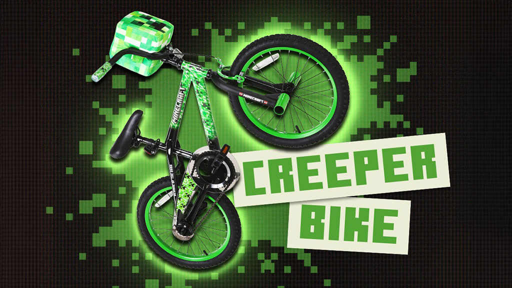 Djeca koja prelaze s bicikala od 12 ili 16 inča; obožavatelji Minecrafta koji traže avanturu u stvarnom svijetu.Ovaj bicikl ima jedinstvene Minecraft grafike na okviru, vilici, zaštiti lanca i pomoćnim kotačima, te dolazi s plišanom Creeper glavom koja se može skinuti s upravljača. Ima podesivo sjedalo, uklonjive pomoćne kotače, kao i prednje i stražnje kočnice.