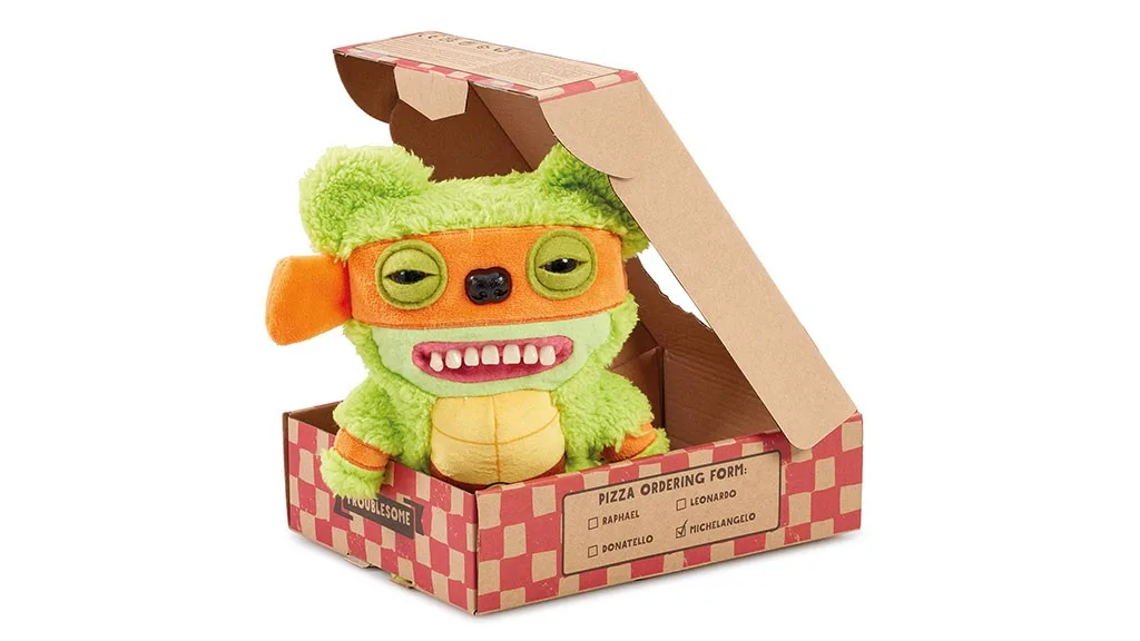 Ova kolekcija sadrži plišane igračke na temu Teenage Mutant Ninja Turtles, koje prikazuju likove Leonarda, Raphaela, Donatella i Michelangela na način na koji ih djeca još nisu vidjela. Ove "fuggly" (smiješne i ružne) plišane igračke nose kornjače oklope i ikonične maske Teenage Mutant Ninja Turtlesa, u jedinstvenom stilu Fuggler čudovišta. Sve četiri plišane igračke dolaze u pakiranju pizza kutije, baš kao i omiljena poslastica kornjača!Ove čudno izgledajuće plišane igračke su najjedinstveniji Teenage Mutant Ninja Turtles suveniri koje smo ikada vidjeli. Sve četiri plišane igračke predstavljaju jedinstven, bizarni stil. Možda su čudne, ali su istovremeno izuzetno zagrljive. Leo pliš je poput čudne, zubate lisice. Michelangelo Fuggler bi mogao biti medvjed ako stisnemo oči. Donatello pliš gotovo izgleda kao kornjača, ali mu ruke su predugačke! Naposljetku, Raphael Fuggler može biti najružniji među njima, s ogromnim otvorenim ustima, izbuljenim ludim očima i dugom, čupavom dlakom. TMNT Fuggleri dolaze čak i u pakiranju u stilu kutije za pizzu, što spaja sve ikonične čudnosti.Neki mlađa djeca mogu smatrati ove plišance pomalo zastrašujućima ili odbojnima zbog jedinstvenog stila, stoga je ovo poklon koji bi se trebao čuvati prije za iskusnije obožavatelje TMNT.Obožavatelji Malih Ninja Kornjača. Svatko tko traži manje poznat poklon. Svi ljubitelji čudnih i ludačkih stvari.