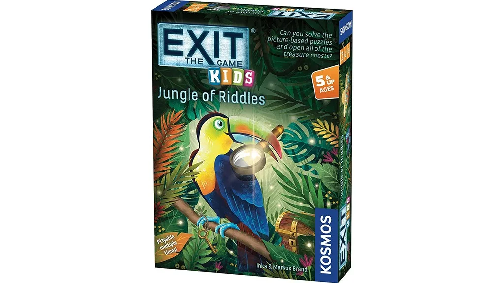 EXIT: Kids – Zagonetke u džungli je igra u kojoj djeca moraju riješiti zagonetke na temelju slika kako bi otključala blaga čuvana od strane životinja. Igra sadrži list s odgovorima, 36 kartica sa zagonetkama, devet žetona s blagom, šest žetona s ključevima i sedam čudnih predmeta. Igrači moraju povlačiti karticu sa zagonetkom po boji i pojedinačno rješavati zagonetke. Ako je prema listu s odgovorima njihovo rješenje točno, djeca dobivaju žeton s ključem da otključaju blago. Avantura završava kada igrači riješe šest zagonetki i osvoje svoje blago.
