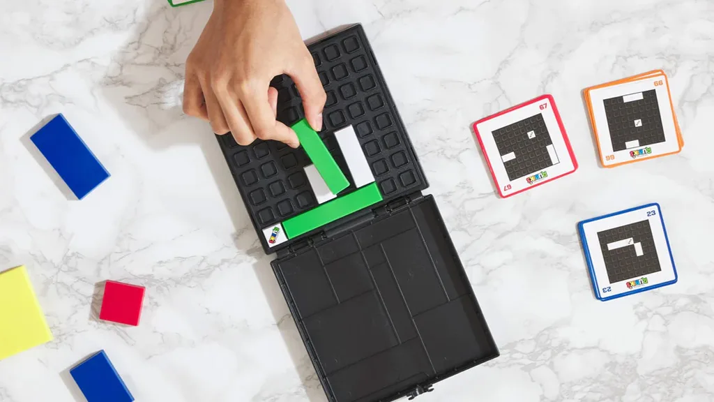 Obitelji koje traže novi, prijenosni krevetić; bilo tko tko želi poboljšati svoje vještine rješavanja problema i raditi na pristupu preprekama iz različitih perspektiva.Nakon što si okrenuo izazovnu karticu s puzzleom, kopiraj poziciju bijelih početnih blokova na igraćoj ploči. Zatim pokušaj uklopiti ostale blokove na igraću ploču tako da početne komade ne pomičeš! Ukupno postoji 44 dvostrane puzzle kartice, od početničke do ekspertne razine, tako da ukupno ima 88 različitih izazova na raspolaganju.