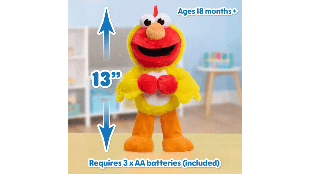 Interaktivna plišana igračka Elmo Chicken Dance iz Ulice Sezam od Just Play-a je uzbudljiva interaktivna igračka koja donosi pokret i veselje u živote obožavatelja Elma. Djeca mogu pritisnuti Elmovu nogu kako bi aktivirali jedan od dva načina igre: način plesa ili način šale. U načinu plesa, Elmo pleše i pjeva pjesmu o pilećem plesu; u načinu šale, priča viceve i potiče djecu da se igraju s njim.