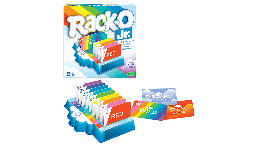 Dok Rack-O Jr. nudi obrazovne prednosti i zabavnu igru, roditeljski nadzor može biti posebno potreban za mlađe igrače. Osim toga, nekoj djeci može biti potrebna početna pomoć u razumijevanju pravila, ali jednostavnost igre omogućuje brzo učenje i s vremenom samostalnu igru.Roditelji traže uzbudljive aktivnosti koje potiču vještine učenja izvan tradicionalnog učioničkog okruženja; obitelji koje traže nove dodatke za igraonice.U ovoj junior verziji igre Rack-O cilj je biti prvi koji će ispuniti svoj nosač kartama od najniže do najviše. Brojčane karte su kodirane bojama kako bi odgovarale bojama duge (i bojama nosača). Posebne karte čine ovu igru uzbudljivom za 2-4 igrača.