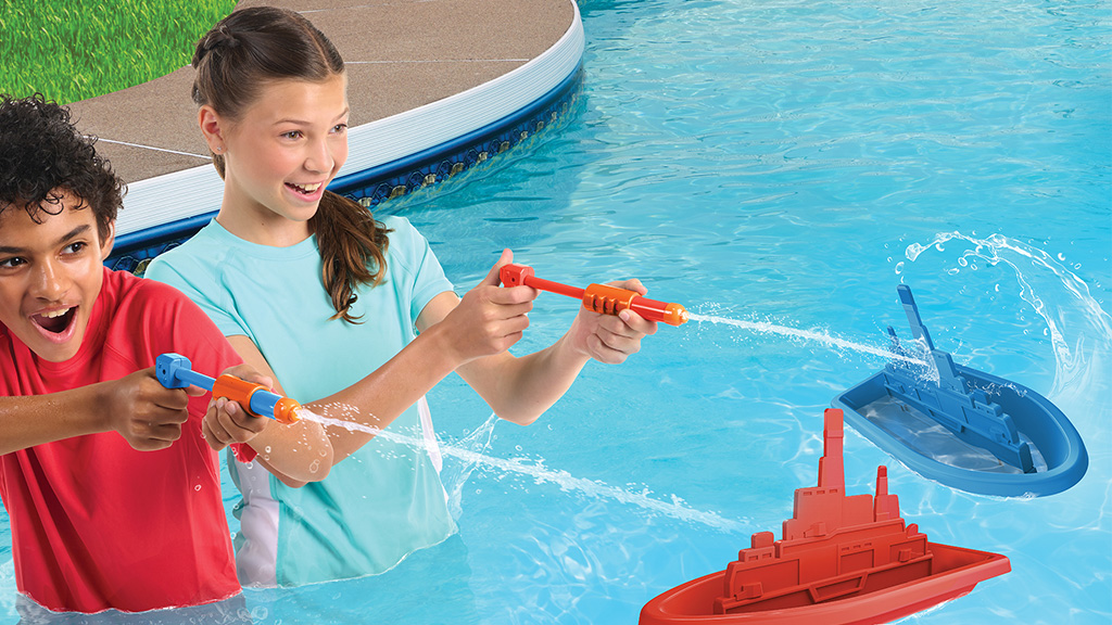 Smjesti bojne brodove u svoj bazen i koristi brzo punjive vodene pištolje kako bi potopio protivnički brod. Igrači mogu odrediti pravila koliko je bodova potrebno za pobjedu, tako da postoji mnogo načina za igru!Paket također sadrži detaljna pravila igre koja pomažu igračima da brzo shvate tijek igre. Vodeni pištolji su ergonomski dizajnirani, tako da se mogu udobno koristiti dulje vrijeme. Bojni brodovi su izrađeni od izdržljivog materijala kako bi izdržali napore tijekom vodenih bitaka.