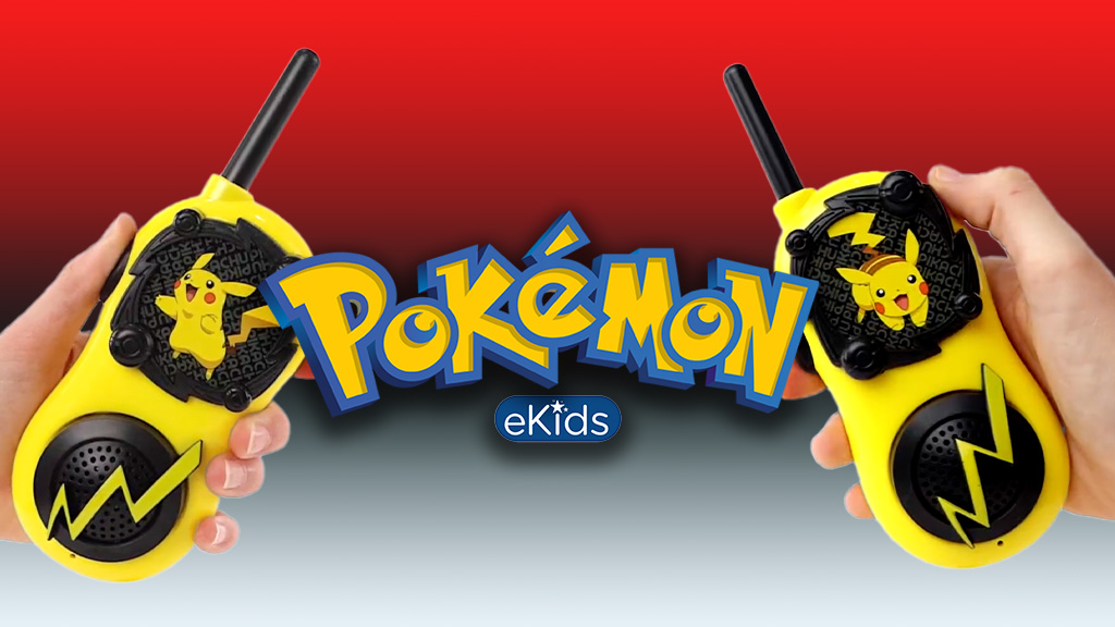 Mališani mogu razgovarati sa svojim prijateljima pomoću ovih walkie-talkie uređaja s temom Pokémon od eKidsa. Set sadrži dva žuto-crna walkie-talkieja inspirirana Pikachuom, ukrašena munjom na zvučniku i mini Pokélopta uzorcima oko Pokémon grafike. Uređaj mogu koristiti djeca od 3 godine i starija uz pomoć gumba za uključivanje/isključivanje, gumba za razgovor, zvučnika i mikrofona. Pritiskom i držanjem gumba za razgovor djeca mogu slati tajne poruke na udaljenost veću od 150 metara.