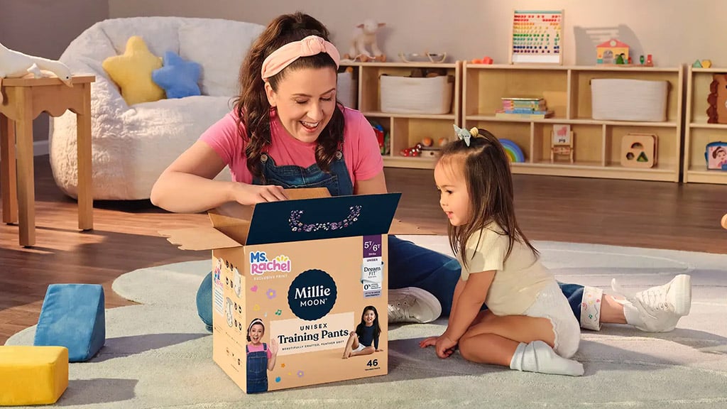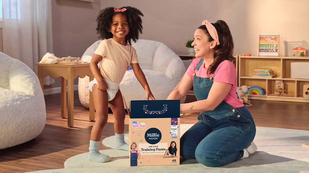 Ms. Rachel videi su pomogli obiteljima diljem svijeta u prevladavanju izazova odvikavanja od pelena. Sada omiljena učiteljica obožavatelja surađuje s Millie Moon markom kako bi stvorili novu kolekciju pelena-gaćica za učenje, tako da Ms. Rachel može biti uz djecu na svakom koraku njihova puta prema samostalnosti u korištenju toaleta.
