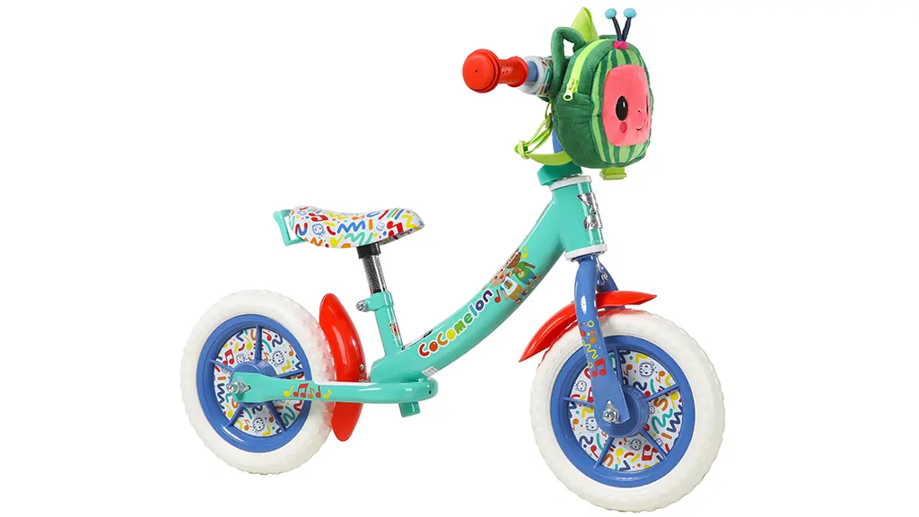 Dynacraft proizvedeni CoComelon 10-inčni bicikl bez pedala dizajniran je kako bi pomogao djeci vježbati ravnotežu prije prelaska na bicikl s pedalama. Bicikl ima kotače od 10 inča (koji su idealni za djecu visoku otprilike 31-39 inča), skidajuću torbu na upravljaču, EVA gume koje se ne mogu probušiti, te veselu grafiku JJ-a i Codyja. Dolazi djelomično sastavljen i potrebno je otprilike 20 minuta za potpuno sastavljanje (potrebno je odraslu osobu za sastavljanje).