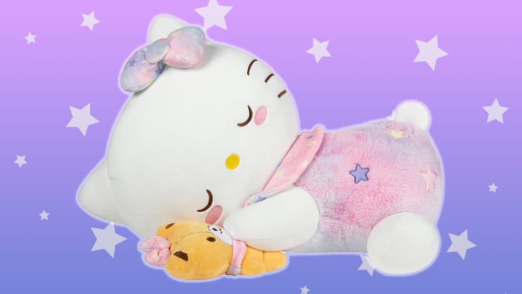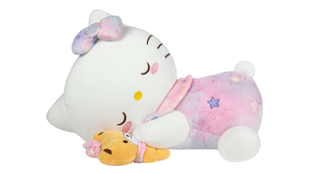 Ova velika, super mekana plišana igračka od Jazwares-a prikazuje pospanu Hello Kitty koja odmara sa svojim omiljenim medvjedićem, Tiny Chum-om. Njena pidžama je izrađena od sherpa materijala za maksimalnu udobnost!