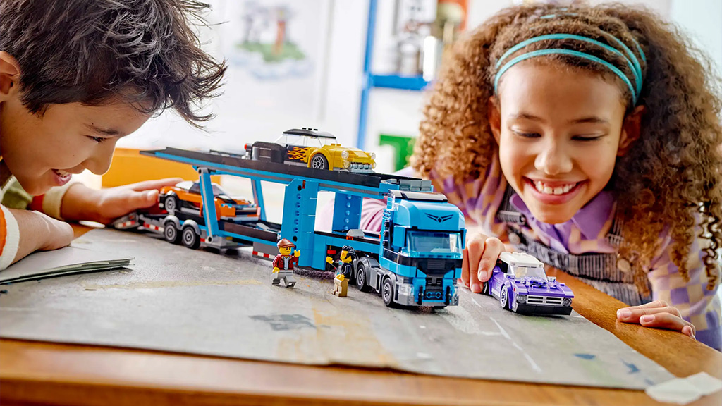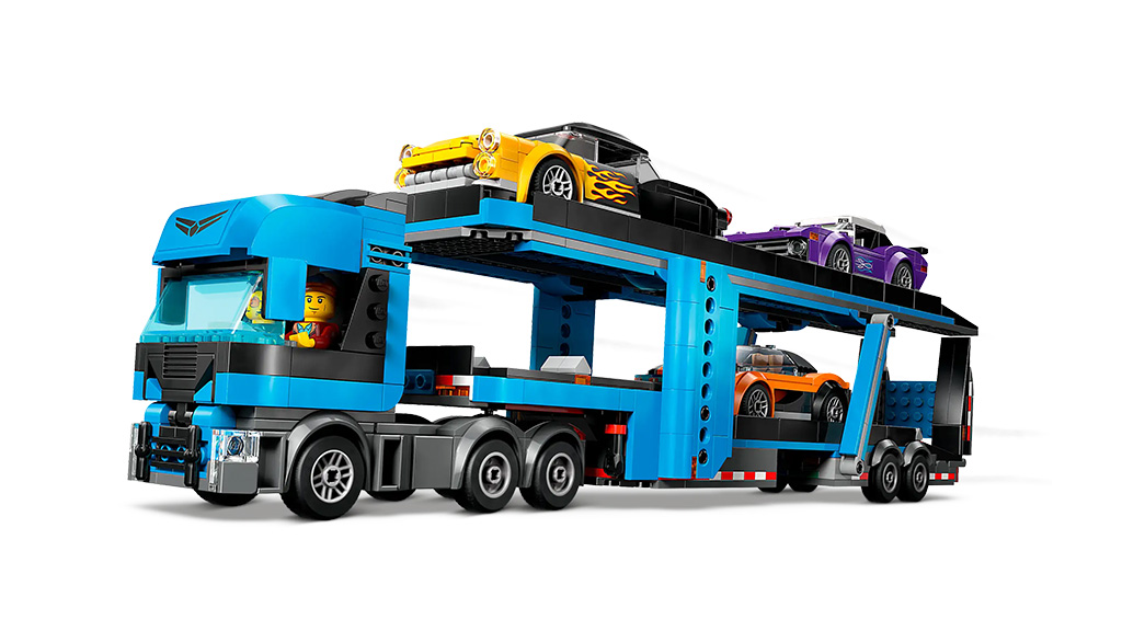 Ovaj LEGO City set od 998 dijelova sadrži kamion s prikolicom na kat, tri prilagodljiva automobila i četiri minifigure. Kamion za prijevoz je realističan i može prevoziti sva tri automobila odjednom. Automobili se mogu prilagoditi zamjenom dijelova i miješanjem boja. Djeca čak mogu nagnuti kabinu vozača kako bi pogledala motor.