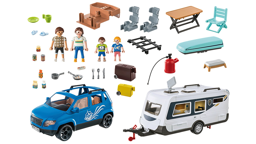Djeca mogu doživjeti iskustvo vožnje automobilom iz udobnosti svog doma zahvaljujući ovom Playmobil setu. Set Karavan s automobilom nudi kamping avanture sa svime što je potrebno na otvorenom, uključujući prostrani karavan, automobil i kamping opremu. Djeca od 4 godine i starija mogu spojiti karavan s automobilom, smjestiti četiri figure unutra i krenuti s obitelji na svoje zamišljene automobilske izlete.