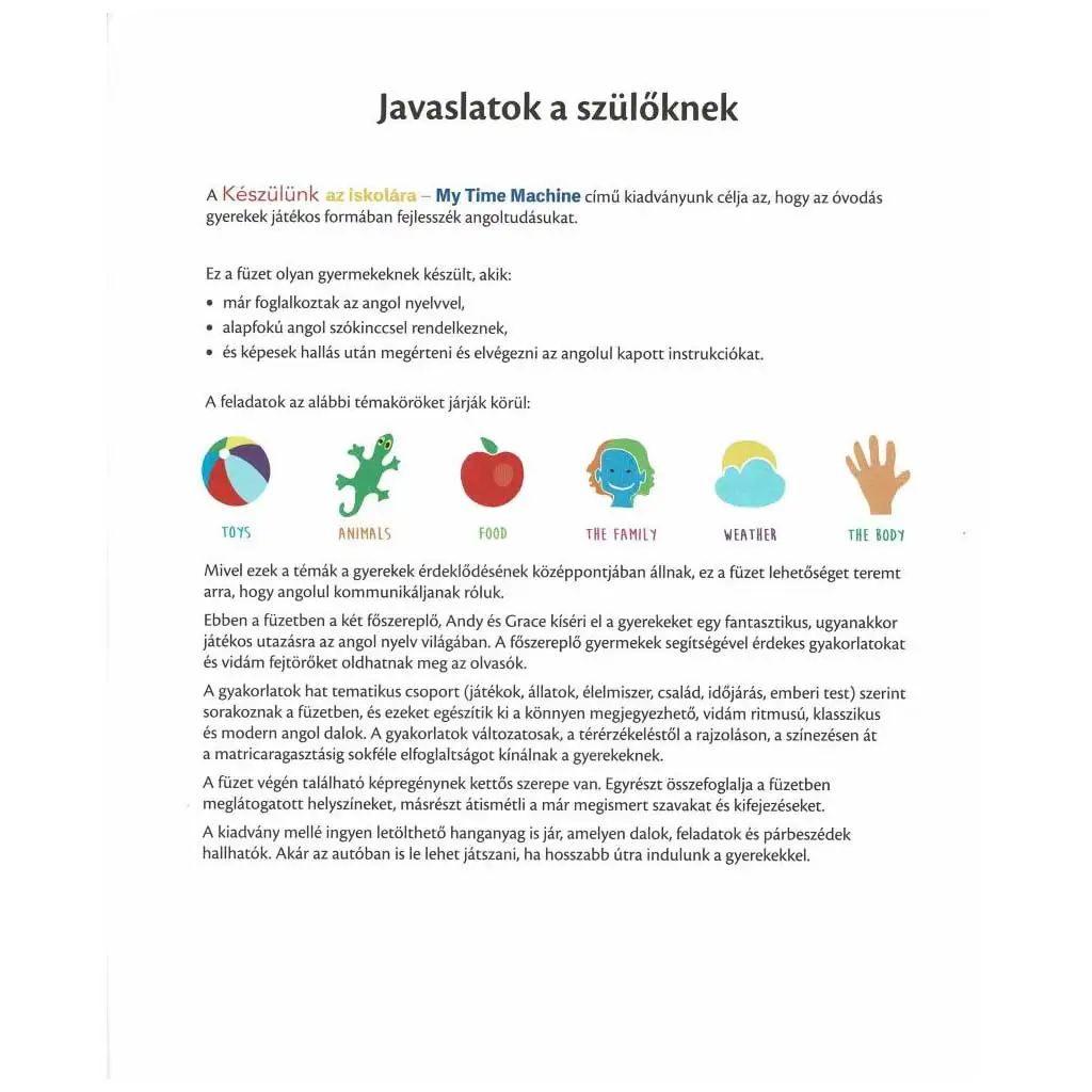 Glavni likovi, Andy i Grace, prate djecu na ovom fantastičnom putovanju, gdje razigrani zadaci i šarene, vesele ilustracije jamče zabavno učenje. Bilježnica pokriva različite tematske cjeline kao što su igre, životinje, hrana, obitelj, vrijeme i ljudsko tijelo, koje su u središtu interesa djece. Zadaci su raznoliki i razvijaju brojne vještine, od percepcije do crtanja, bojanja i lijepljenja naljepnica.