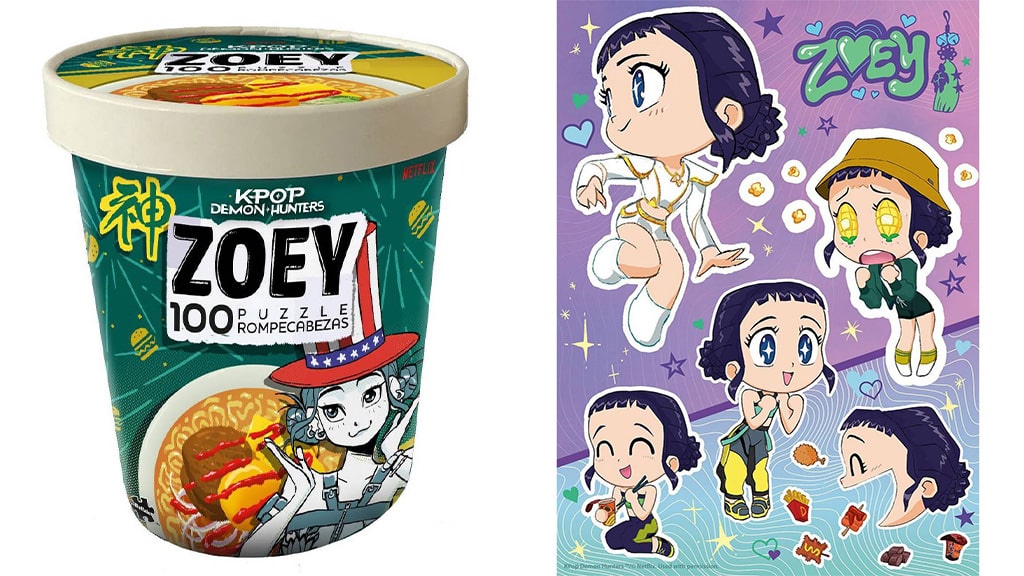 Svaki KPop Démonvadászok Ramen Puzzle je kolekcionarski predmet koji dolazi u kutiji nalik na ramen. Ovo pakiranje sadrži iste uzorke koje smo mogli vidjeti u uvodnoj sceni filma. Iako kutija nije ispunjena rezancima, skriva slagalicu od 100 dijelova na kojoj se nalazi jedan od trojice članova grupe Huntr/x. Ove posebne slagalice nisu samo zabavne, već mogu biti i odličan poklon za obožavatelje KPop Démonvadászok, jer zbog dizajna kutije i jedinstvenosti puzzli predstavljaju prave kolekcionarske komade. Detaljne ilustracije i kvalitetna izrada čine ovaj proizvod još posebnijim, a na polici svakog fana izgleda odlično.