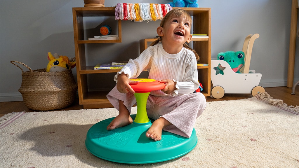 Djeca mogu birati žele li se polako okretati ili brzo vrtjeti. Ova klasična Playskool igračka izvrsna je za razvoj ravnoteže, koordinacije, motoričkih vještina i razumijevanja uzročno-posljedičnih veza kroz aktivnu igru. Playskool vrtuljak već desetljećima je popularan među obiteljima, jer ne samo da zabavlja, nego i pomaže djeci da kroz igru uče i razvijaju se. Zahvaljujući izdržljivoj izradi, igračka dugo pruža radost mališanima, dok u sigurnom okruženju otkrivaju veselje kretanja.