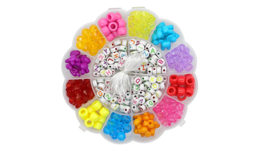 Šareni set perli u kutiji u obliku cvijeta, ovaj set osigurava 270 različitih komada za kreativne projekte nakita za djecu. Također sadrži i uzice koje omogućuju raznolike rukotvorine, poput narukvica, nožnih lančića, ogrlica, kao i ukrašavanje ručno izrađenih kartica i torbi.