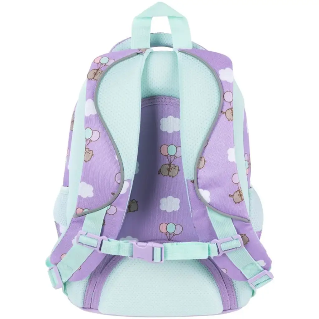 Pusheen Violet ergonomska školska torba BPL58 savršen je izbor za svakog malog školarca koji voli Pusheen mačkicu i obožava slatke i praktične dodatke. Ruksak je ukrašen prekrasnom ljubičastom bojom s detaljima u boji mente i veselim motivima prepoznatljive Pusheen mačke, koja leti među oblacima s balonima. Patentni zatvarači u obliku zvijezde i ukrasi s uzorkom oblaka dodatno naglašavaju šarm ruksaka, dok istovremeno daju moderan i veseo izgled.