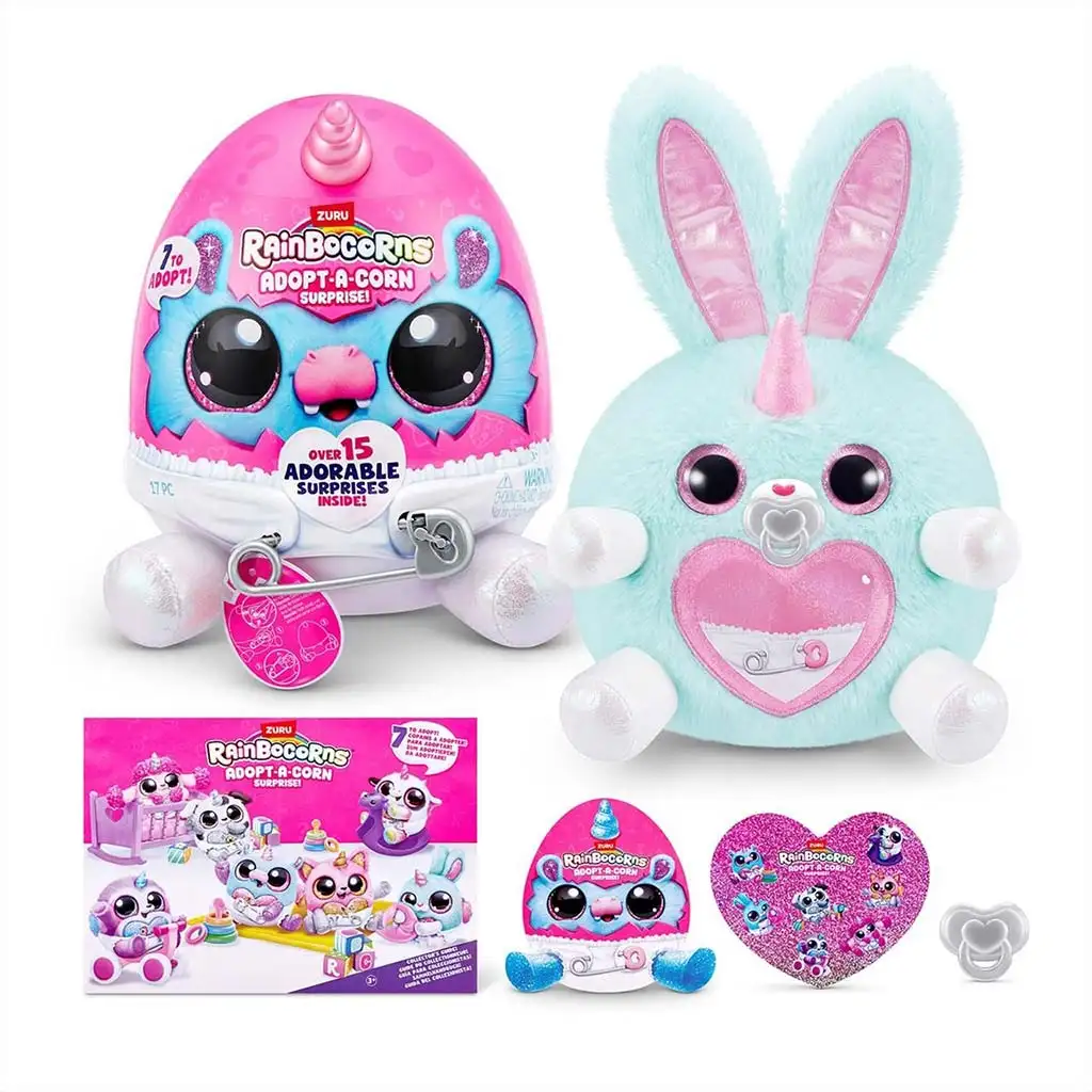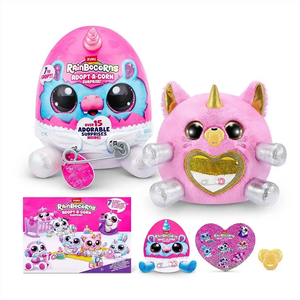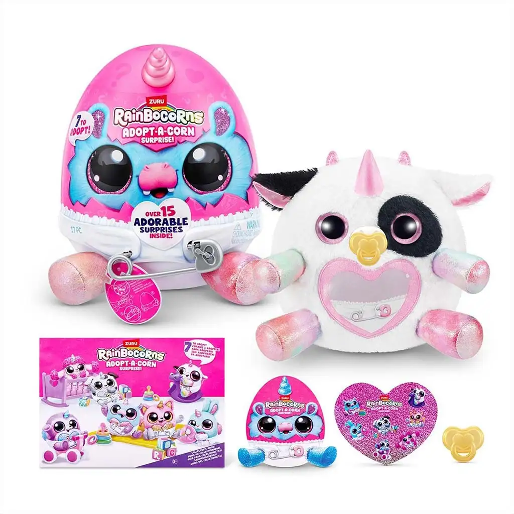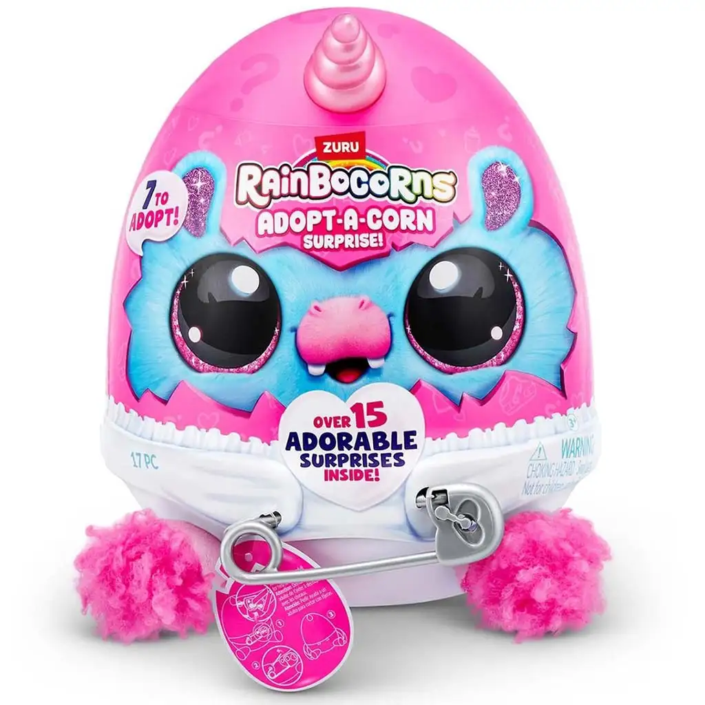 U seriji Rainbocorns: Adopt-a-Corn možete prikupiti sedam različitih plišanih beba jednoroga, tako da svatko može pronaći svog omiljenog. Figure imaju jedinstven izgled i svaka od njih ima različit stil, boje i ukrase, što prikupljanje čini još uzbudljivijim. Ove male figure savršene su za izgradnju vlastitog maštovitog svijeta dok se brinu o svom usvojenom malom beba jednorogu.