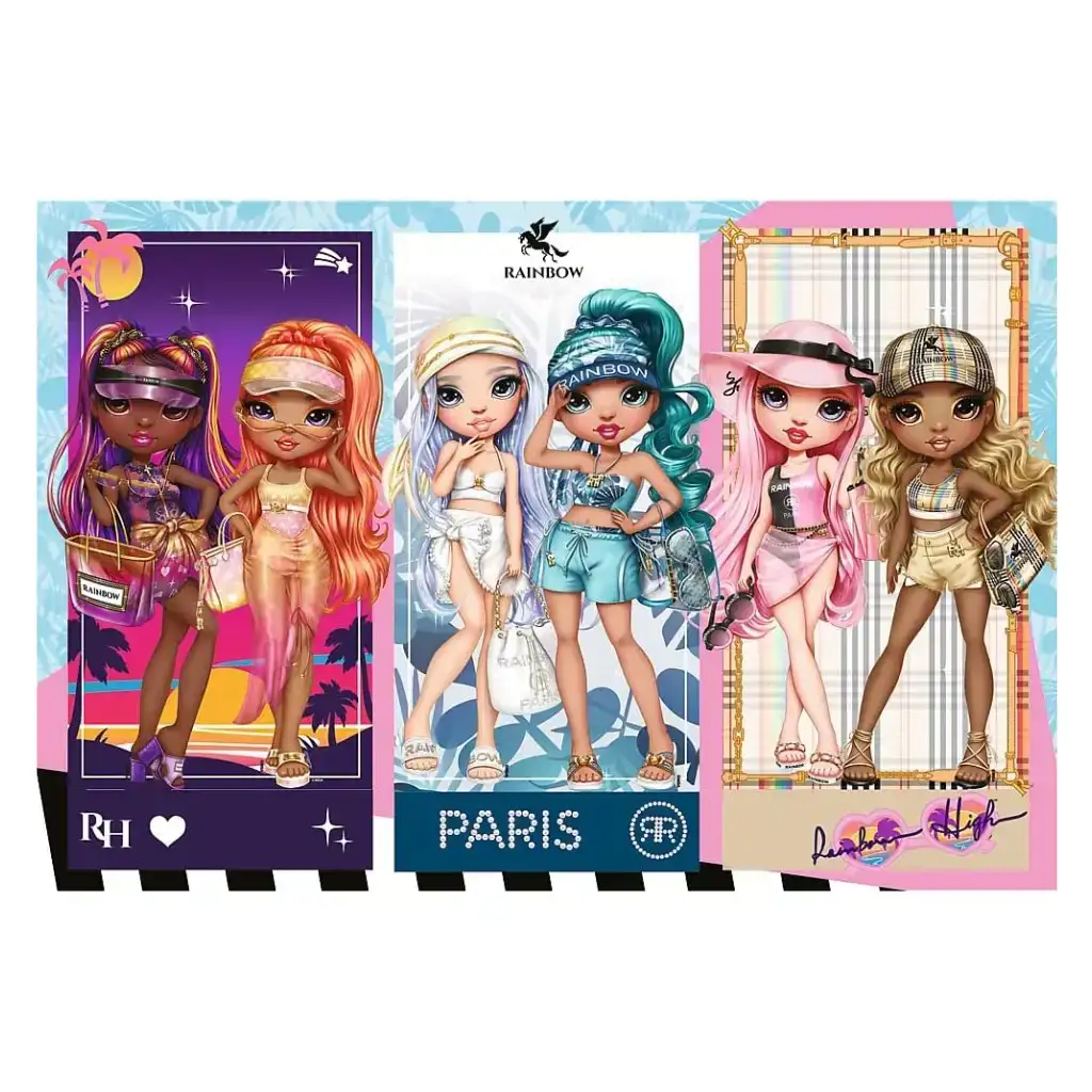 Izuzetno moderne Rainbow High djevojke sigurno će vas oduševiti. Ova šarena slagalica prikazuje otkačene djevojke u najšarenijoj i najmodernijoj odjeći. Slika je podijeljena na tri dijela, a u svakoj od tri različite scene prikazane su po dvije Rainbow High djevojke. Treflove puzzle izuzetne kvalitete zahvaljujući prekrasnom, živopisnom i oštrom otisku iznimno vjerno prikazuju sve detalje slike. Pojedini dijelovi slagalice točno i precizno pristaju jedan uz drugi, a sastavljena slika stvara lijepu, homogenu površinu.