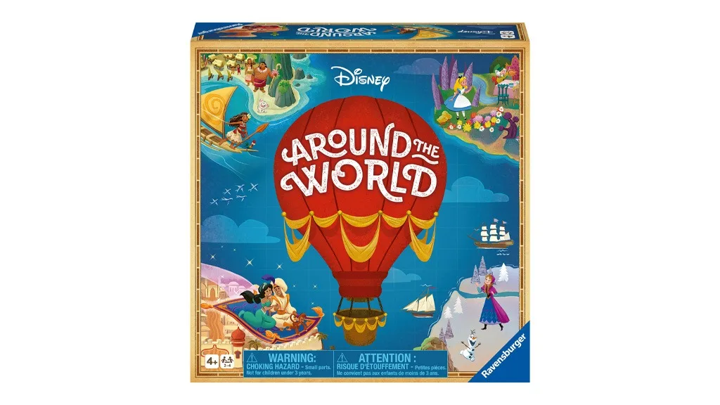 U igri Disney Around the World pojavljuju se Aladin, Alisa u Zemlji čudesa, Auti, Snježno kraljevstvo, Moana i Priča o igračkama. Svaki film dobiva svoj svijet na kružnoj igraćoj ploči. Djeca mogu baciti kocku da vide gdje će stupiti, ali moraju se čuvati vjetra i oblaka koji otežavaju letenje! Ako skupe četiri pečata u svoju putovnicu, pobijedili su u igri.Ako to još uvijek nije dovoljno Disney za vaše planove igre, Ravensburger ima još mnogo toga. Tvrtka je nedavno pokrenula novu Disney Lorcana kartašku igru, gdje igrači koriste čarobne tinte kako bi skupili tim svojih omiljenih Disney likova.