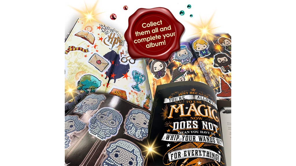 Obitelji mogu nabaviti i dodatne pakete iznenađenja kako bi proširile svoju kolekciju naljepnica. Ovi paketi sadrže uzbudljive, nove naljepnice, kojima kolekcija može postati još šarenija i raznovrsnija. Paketi iznenađenja omogućuju djeci i roditeljima da zajedno otkrivaju nove uzorke i zajedno uživaju u radosti lijepljenja naljepnica. To ne samo da razvija kreativnost, već zajedničko provođenje vremena čini još zabavnijim.S ovom albumom inspiriranim Harry Potterom, izrada sličica postaje zaista čarobno iskustvo za cijelu obitelj. Početni paket sadrži album sa 102 sličice i dva paketića iznenađenja, od kojih svaki sadrži po tri sličice. Ove sličice su spremne da ih ukrasite sjajnim kristalnim kamenčićima. Ova kreativna aktivnost nije samo zabavna, već razvija i spretnost ruku i kreativnost, dok obitelj može zajedno provoditi kvalitetno vrijeme u čarobnom svijetu.