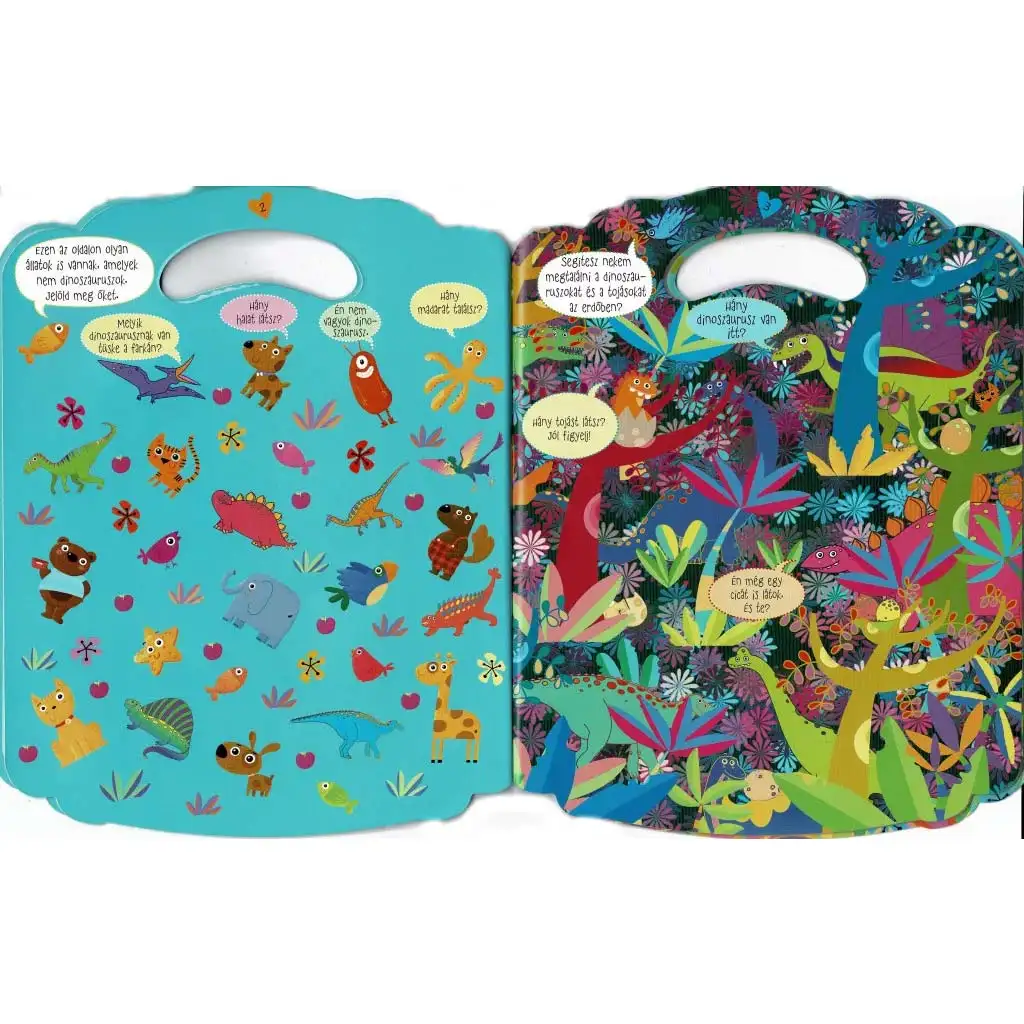 Radna bilježnica potiče ne samo kreativnost, već i logičko razmišljanje te sposobnost zapažanja. Djeca mogu rješavati labirinte, sparivati sjene, brojati dinosaure ili tražiti razlike između dvije slike. Posebne stranice nude bojanke, pretraživalice riječi i jednostavne zagonetke – sve to uz atraktivne, vesele ilustracije.