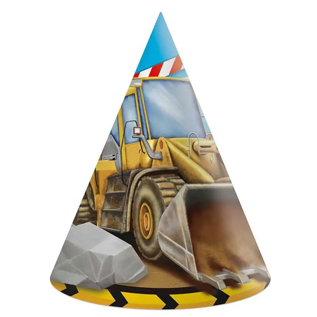 Set od 6 party šešira s uzorkom radnih strojevaSet od 6 party šešira s uzorkom radnih strojeva