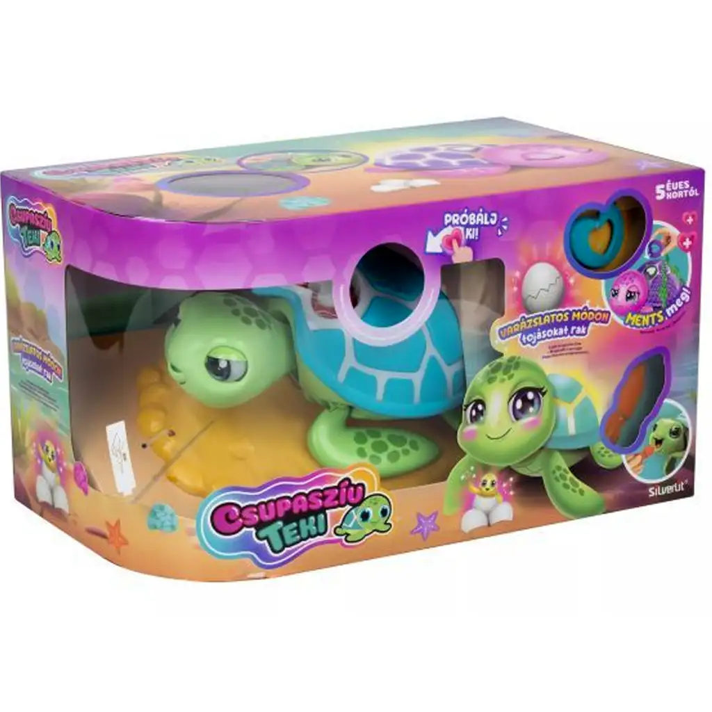 Silverlit Csupersrce Tekije, interaktivna kornjača, igračka je u kojoj djeca zaista mogu brinuti o maloj kornjači koja zahtijeva njihovu posebnu pažnju! Kada se srcoliki oblik postavi na oklop kornjače, slatka životinjica postaje sretna i počinje se kretati, a to se može dodatno pojačati maženjem glave. Njeno raspoloženje pokazuje boja srca: ako je vesela, svijetli crveno, ako je umorna, narančasto, u slučaju tuge plavo, a ako je gladna, svijetli zeleno. Kao rezultat pažnje i brige djece, kornjača polaže jaja iz kojih se "izlegu" male kornjače.