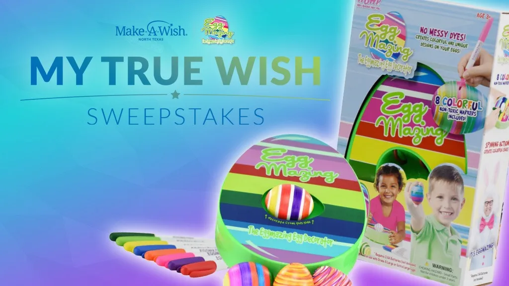 Ostvaren je san zahvaljujući Hey Buddy Hey Pal i Make-A-Wish North Texas!Make-A-Wish North Texas zajedno s Hey Buddy Hey Pal - i njegovom obitelji proizvoda EggMazing Egg Decorator - spreman je ostvariti želje ljudi s novom nagradnom igrom. Nagradna igra My True Wish traje od 15. veljače do 25. ožujka, tijekom koje će biti ponuđeno 10 000 dolara kako bi se ispunila želja sretnog dobitnika.