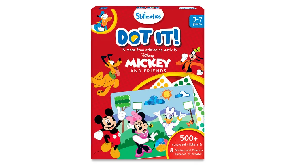 Dot It, koji je namijenjen dobnoj skupini od 3-7 godina, set je za umjetničke aktivnosti s naljepnicama bez nereda. Verzija s Disney princezama stiže u ožujku, a verzija s Mickeyem i prijateljima bit će dostupna u travnju.