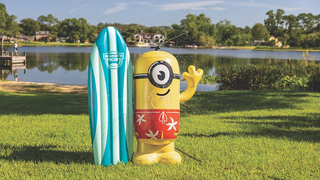 Priključite ovu prskalicu inspiriranu Minionima na standardno vrtno crijevo kako biste dobili 360-stupanjsku rotirajuću vodenu maglu i dvije dodatne točke prskanja. Minion visok 4,5 stope je lagan i lako prenosiv.