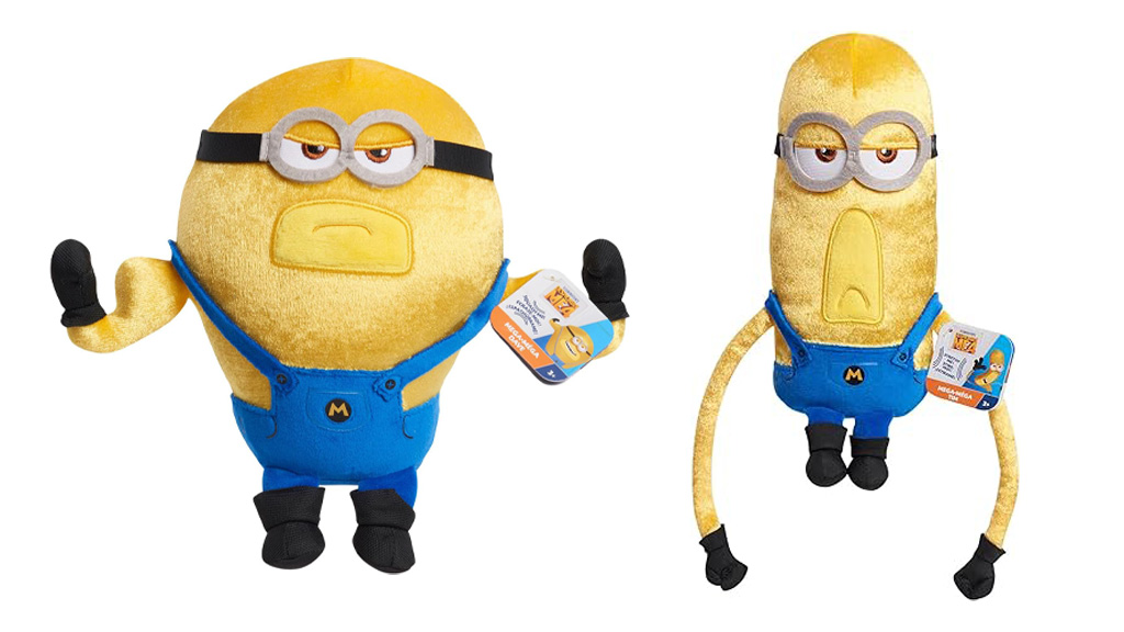 Zagrli, stisni, pritisni i zagrli Squooshy plišane minione! Postoje četiri miniona, a svaki ima različit fidget mehanizam: Mega Dave sa sporom pjenom, Mega Gus sa zračnim jastukom, Mega Tim s grahom i rastezljivim rukama, te Mega Jerry sa zveckavim peletima i grahom.