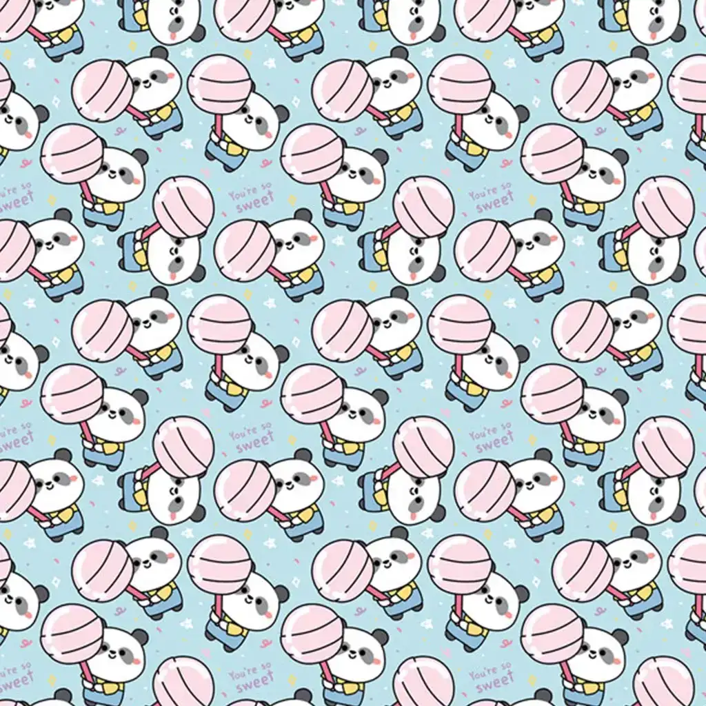 Svijetloplava pozadina savršeno ističe crno-bijele pande i pastelno ružičaste lizalice. Male zvjezdice, srčeka i natpisi „You’re so sweet” čine ovaj uzorak još slađim i simpatičnijim. Moderan, crtićasti dizajn osobito je popularan među djecom, tinejdžerima i ljubiteljima slatkog stila.