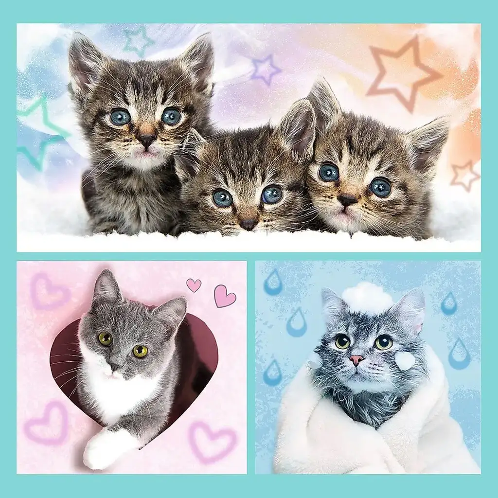 "Puzzle nazvan "Slatke mačke" proizvođača Trefl je 3-u-1 slagalica koja pruža trostruku radost tijekom slaganja! Ovaj set sadrži tri različite veličine slagalica koje prikazuju slatke mačiće. Različiti brojevi dijelova omogućuju manjoj i većoj djeci da uživaju u radosti slaganja.