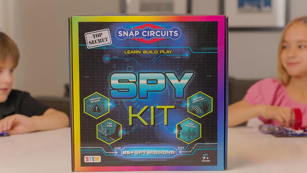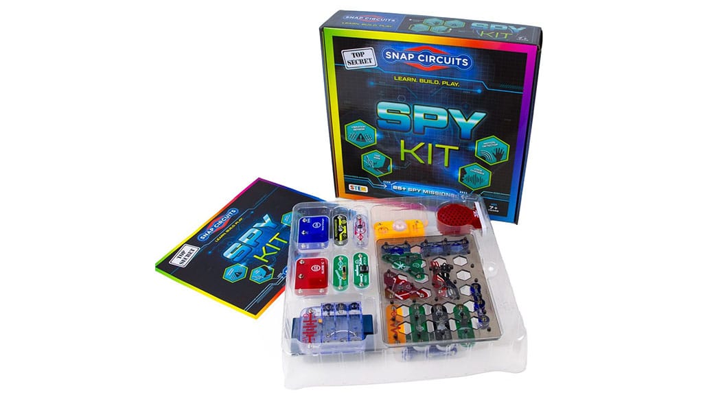 Snap Circuits Špijunski set je istovremeno igračka i praktičan način da djeca nauče kako funkcionira električna energija i uređaji. Povezivanjem Snap Circuits elemenata na ploči, djeca mogu stvoriti više od 20 različitih špijunskih misija, što im pruža zabavna iskustva tajnog agenta dok uče. Špijunski set sadrži ilustrirani vodič koji olakšava entuzijastičnoj djeci da se samostalno snađu u procesu izgradnje.