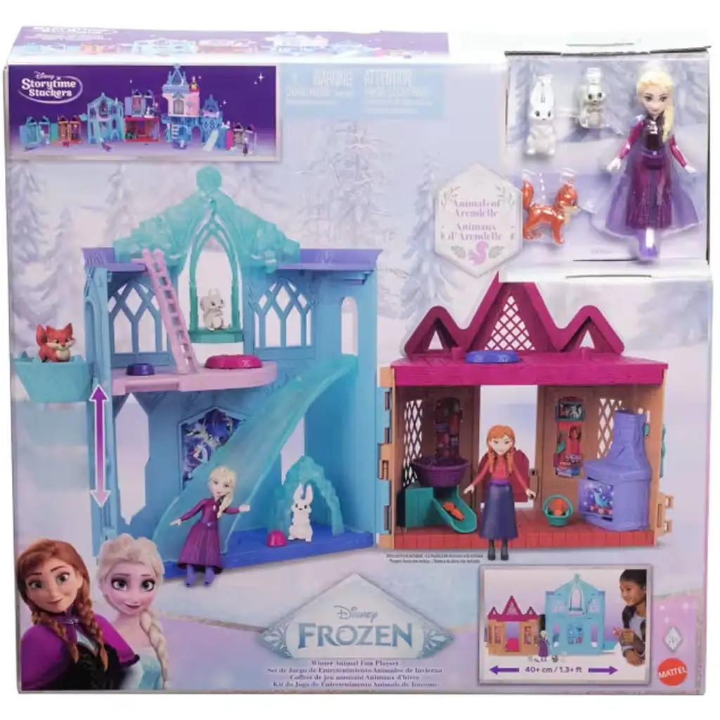 Životinje koje klize niz tobogan, interaktivni lift, udobni kutci za odmor i dodaci za hranjenje životinja pridonose maštovitoj i brižnoj igri uloga. Set je kompatibilan s ostalim Disney Storytime Stackers setovima, pa se Frozen svijet može proširivati i nadograđivati.