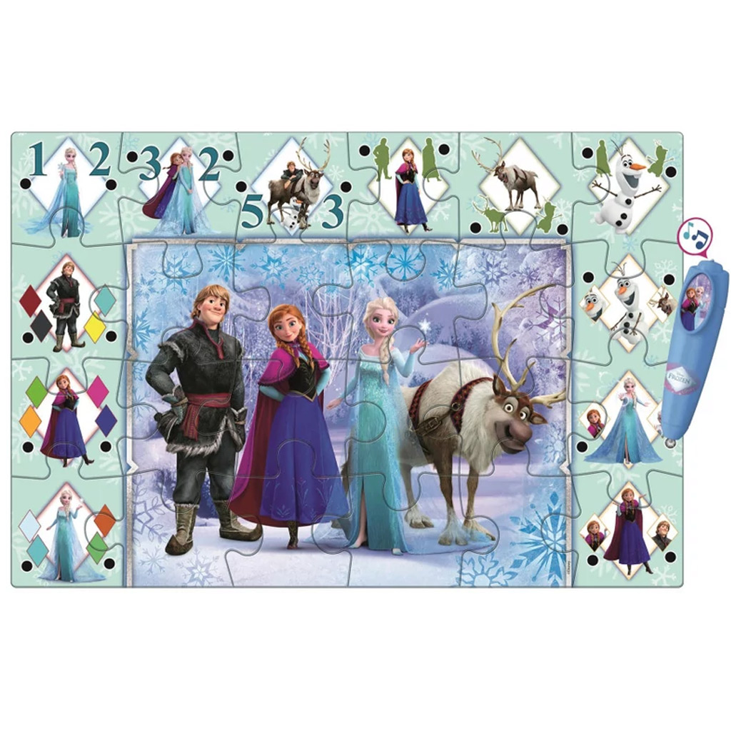 Interaktivni podni puzzle Frozen savršen je izbor ako tvoje dijete obožava priče i voli učiti igrajući se. Puzzle se sastoji od velikih, lako uklopivih dijelova koji pomažu razvijati logičko razmišljanje i finu motoriku, dok dobro poznati likovi čine igru još uzbudljivijom. Posebna interaktivna olovka ispušta zvukove, pa dijete tijekom slaganja aktivno može otkrivati slike. Idealno i za zajedničku igru, istovremeno jačajući koncentraciju i vještine rješavanja problema.