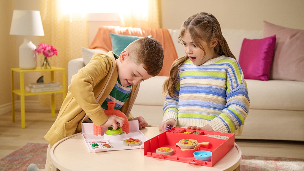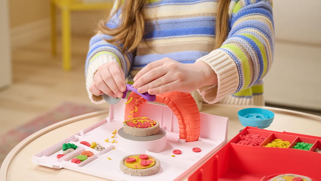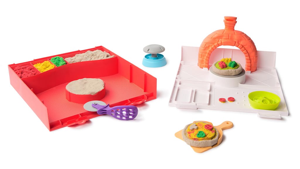 Djeca mogu napraviti vlastite, jedinstvene kombinacije pizze uz pomoć četiri različite boje kinetičkog pijeska i kalupa za nadjeve, a zatim ih staviti u zamišljenu pećnicu za pizzu kako bi vidjeli kako se pizze „peku” i dižu. Ova kreativna igra razvija spretnost ruku, maštu te prepoznavanje boja i oblika. Uz proizvode marke Kinetic Sand djeca se mogu zabavljati satima dok vode vlastitu pizzeriju, isprobavaju različite nadjeve i kombinacije boja, a svoja djela mogu podijeliti i s prijateljima.