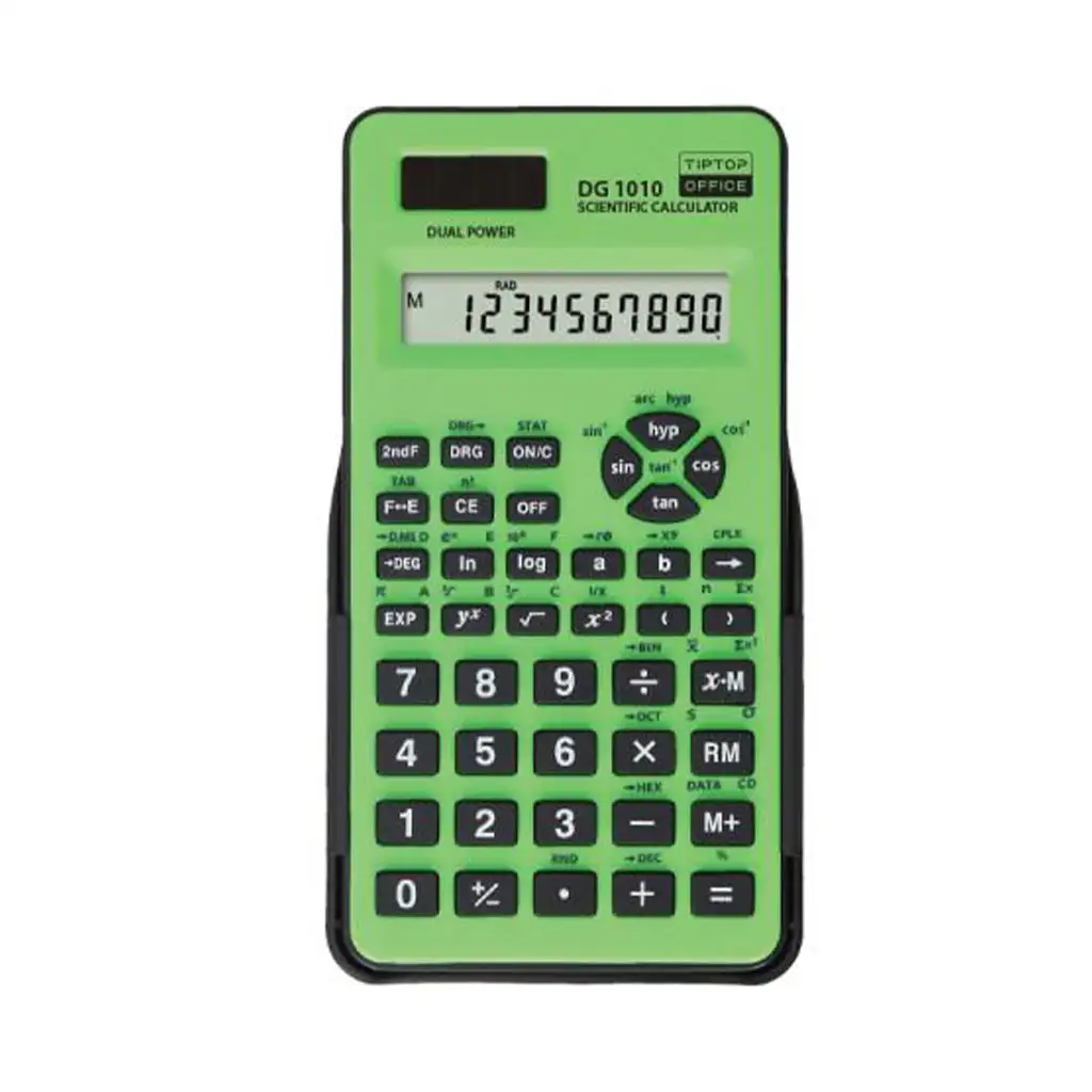 DG-1010 zelena znanstvena kalkulator savršen je alat za svakog učenika i stručnjaka koji traži pouzdan i svestran kalkulator. Desetoznamenkasti zaslon omogućuje jednostavno prikazivanje složenijih izračuna, tako da uvijek možete točno vidjeti rezultate izračuna. Uređaj ima ukupno 56 različitih funkcija, uključujući statističke i trigonometrijske operacije, koje omogućuju brzo i učinkovito rješavanje svih zadataka.