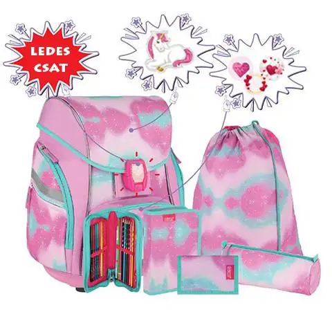 Spirit: Ergonomski set školskih torbi s 3D uzorkom jednoroga, 5 komada, s LED osvjetljenjem, 34x22x41cmSpirit: Ergonomski set školskih torbi s 3D uzorkom jednoroga, 5 komada, s LED osvjetljenjem, 34x22x41cm