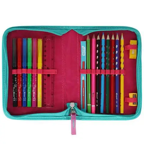U ovom izvanredno vrijednom paketu nalazi se svaka oprema koja bi mogla biti potrebna djevojčicama koje tek počinju školu. Među držačima olovaka nalazi se jedan cilindrični i jedan klasični dizajn, koji već uključuju pribor za pisanje. Set uključuje torbu za tjelesni odgoj i novčanik, koji mogu biti korisni za svakodnevnu upotrebu.