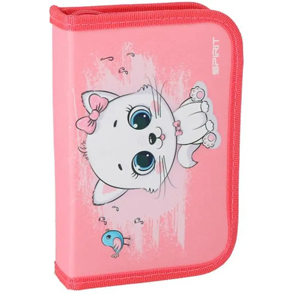 Spirit Cuki Cica pernica s motivom mačke savršen je izbor za sve male ljubitelje životinja koji vole slatke, vesele i šarene školske dodatke! Na prednjoj strani pernice razigrano gleda bijela mačkica s velikim očima i mašnicom – na vedroj ružičastoj pozadini, uz malenu pticu, što će svaki školski dan izmamiti osmijeh na lice vašeg djeteta.