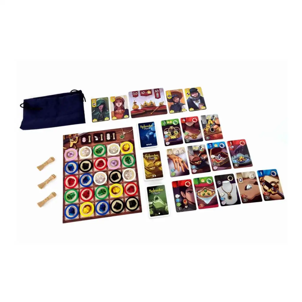 Tražite društvenu igru koja je brza, strateška i savršena za dva igrača? Upoznajte Splendor: Duel, gdje možete ući u svijet sjajnih dragulja i osvojiti pobjedu pametnim odlukama! Splendor je lako naučiti, ali zahtijeva duboku strategiju u igri za dva igrača. Cilj igre je jednostavan: steći ugled s najvrednijim draguljima. Ali kako doći do tih sjajnih blaga? Dobivanjem dragulja prikazanih na ploči možete dobiti nove karte koje osiguravaju još više dragulja. Što vrijednije dragulje prikupite, to vrijednije karte možete kupiti, što vas sve više približava pobjedi. Ali ne zaboravite, strategija je ključna! Vaš protivnik također cilja na iste dragulje, a samo oštroumni igrači mogu zaista dominirati na ploči. Razmislite, planirajte unaprijed i pokušajte predvidjeti poteze protivnika kako biste prvi stekli dovoljno ugleda za pobjedu. Splendor: Duel je savršena igra za one koji vole brze, ali izazovne strateške igre gdje je svaka odluka važna. Pripremite se za uzbudljiv dvoboj u svijetu dragulja!